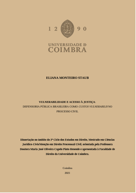 Detalhe da Obra : QUINTO, Eliana Monteiro Staub. Vulnerabilidade e acesso à justiça: defensoria pública brasileira como custos vulnerabilis no processo civil. Coimbra (Portugal): Universidade de Coimbra, 2021. Atenciosamente, Ficha:Visualizar MARC:Visualizar Referência/ABNTDublin CoreRegistros relacionados Tipo: Trabalho acadêmico Título: Vulnerabilidade e acesso à justiça [Recurso Eletrônico] : defensoria pública brasileira como custos vulnerabilis no processo civil Responsabilidade: QUINTO, Eliana Monteiro Staub Autoria Principal: Quinto, Eliana Monteiro Staub, Autor Ano: 2021 Imprenta: Coimbra (Portugal) : Universidade de Coimbra, 2021 Descrição: 117 p. Idioma: Português Suporte: Recurso Eletrônico Assunto: 1. Acesso à Justiça 2. Direitos dos grupos vulneráveis 3. Hipossuficiência 4. Benefício da justiça gratuita 5. Igualdade processual Documentos: Texto integral: Stream: Download: Notas: Notas Gerais: Dissertação apresentada à Faculdade de Direito da Universidade de Coimbra no âmbito do 2º Ciclo dos Estudos em Direito (conducente ao grau de Mestre), na área de especialização em Ciências Jurídico-Civilísticas/ Menção em Direito Processual Civil, sob a orientação da professora Maria José Oliveira Capelo Pinto ResendeNota resumo: A presente pesquisa versa sobre os desafios e problemas enfrentados por indivíduos e grupossociais vulneráveis na busca pela efetivação do acess o à justiça, com reflexões em torno dotratamento jurídico dispensado às vulnerabilidades em Portugal e no Brasil. Tradicionalmente,o movimento universal de acesso à justiça centra se na desigualdade em razão dainsuficiência econômica. Nesse sentido, enc ontram se nos diversos ordenamentos jurídicos asprevisões legislativas de isenção de custas e assistência jurídica gratuita aos desprovidos dere cur sos. Mais modernamente, vêm sendo reconhecidas outras situações de fragil idade quedificultam ou impedem o acesso à justiça, revelando a necess idade de ampliação edesenvolvimento de novos instrumentos de proteção do Estado, com vistas a dissipar oumin imi zar as desvantagens de pessoas e grupos vulnerabilizados, em sua interaçã o com oJudiciário. Com um olhar d irigido às desigualdades dos sujeito s processuais, busca seinvestigar as vulnerabilidades , com destaque a im portantes leis em vigor ao redor do t ema ,assim como aos mecani smos hábeis a suplantar os desequilíbrio s que impa ctam no processo .A esse respeito, destacar se á o significativo papel do Juiz na aplicação d e medidas decompensação aos litigantes , bem como a importância de sua atuação colimada ao dever degestão proces sual, ao princípio da cooperação, ao dever de boa fé processual e ao princípio daad equação formal, de modo a garantir u ma íntegra atividade processual, baseada na busca daverdade, nos esclare cimentos às partes, na superação de f orm alismos exarcebados, be m comono estímulo ao diálogo e a participação. Co mo um dos instrumentos voltados ao equilíbrioprocessual, será analisa da a teoria que reconhece a legitimidade da atuação da DefensoriaPública Brasileira como custos vulnerabilis no âmbito do processo civi l. Em termos gerais, talexpressão tem sido utiliz ada nos casos de ingresso processu al da Defensoria Pública comotercei ro interveniente, em nome próprio, e em prol de sua missão institucional, objetivandocontribuir para que a de cis ão judicial leve em con sideração posições de defesa e/ou interessesde in divíduos ou grupos considerados vu lneráveis envolvidos no litígio. A t eoria encontrafundamento na missão constitucional de prestação de assist ência jurídica aos necessitados, ese u m aior escopo é permitir o fortalecimento do contraditório em prol dos vuln eráveis,contribuindo, assim, para um reforço do acesso à justiça e um a mais adequada e efetiva tutelajurisdicional. ui-button 0 ui-button 0 Avaliação 0Sua avaliação 001 3880 003 005 240729154700.0 006 007 008 221212s2021#### ##### r # por 041__ |a 044__ |a 080__ |a 347.921.8 093__ |a 347.921.8 |b Q7v 100__ |a Quinto, Eliana Monteiro Staub |e Autor 24510 |a Vulnerabilidade e acesso à justiça |b defensoria pública brasileira como custos vulnerabilis no processo civil |c QUINTO, Eliana Monteiro Staub |h Recurso Eletrônico 260__ |a Coimbra (Portugal) |b Universidade de Coimbra |c 2021 300__ |a 117 p. 500__ |a Dissertação apresentada à Faculdade de Direito da Universidade de Coimbra no âmbito do 2º Ciclo dos Estudos em Direito (conducente ao grau de Mestre), na área de especialização em Ciências Jurídico-Civilísticas/ Menção em Direito Processual Civil, sob a orientação da professora Maria José Oliveira Capelo Pinto Resende 520__ |a A presente pesquisa versa sobre os desafios e problemas enfrentados por indivíduos e grupossociais vulneráveis na busca pela efetivação do acess o à justiça, com reflexões em torno dotratamento jurídico dispensado às vulnerabilidades em Portugal e no Brasil. Tradicionalmente,o movimento universal de acesso à justiça centra se na desigualdade em razão dainsuficiência econômica. Nesse sentido, enc ontram se nos diversos ordenamentos jurídicos asprevisões legislativas de isenção de custas e assistência jurídica gratuita aos desprovidos dere cur sos. Mais modernamente, vêm sendo reconhecidas outras situações de fragil idade quedificultam ou impedem o acesso à justiça, revelando a necess idade de ampliação edesenvolvimento de novos instrumentos de proteção do Estado, com vistas a dissipar oumin imi zar as desvantagens de pessoas e grupos vulnerabilizados, em sua interaçã o com oJudiciário. Com um olhar d irigido às desigualdades dos sujeito s processuais, busca seinvestigar as vulnerabilidades , com destaque a im portantes leis em vigor ao redor do t ema ,assim como aos mecani smos hábeis a suplantar os desequilíbrio s que impa ctam no processo .A esse respeito, destacar se á
