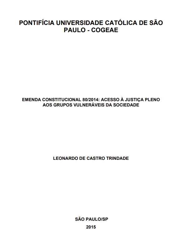 Detalhe da Obra : TRINDADE, Leonardo de Castro; MELO, Mônica de. Emenda Constitucional 80/2014. São Paulo (SP): Pontifícia Universidade Católica de São Paulo, 2015. Atenciosamente, Ficha:Visualizar MARC:Visualizar Referência/ABNTDublin CoreRegistros relacionados Tipo: Trabalho acadêmico Título: Emenda Constitucional 80/2014 [Recurso Eletrônico] Responsabilidade: TRINDADE, Leonardo de Castro Autoria Principal: Trindade, Leonardo de Castro, Autor Autoria Secundária: Melo, Mônica de, Orientador Ano: 2015 Imprenta: São Paulo (SP) : Pontifícia Universidade Católica de São Paulo, 2015 Descrição: 85 p. Idioma: Português Suporte: Recurso Eletrônico Assunto: 1. Direitos humanos 2. Defensoria Pública 3. Direitos dos grupos vulneráveis 4. Desigualdade social Documentos: Texto integral: Stream: Download: Notas: Nota resumo: A Defensoria Pública no ordenamento pátrio somente foi reconhecida como instituição essencial à Justiça em nível nacional no Brasil com a Constituição Federal de 1988, sendo o referido órgão importante para fornecer à população não só o Acesso ao Judiciário, mas também, e principalmente, o acesso do cidadão comum à Justiça e Ordem Jurídica Justa, servindo como verdadeiro instrumento de educação de direitos e defesa dos grupos mais vulneráveis da sociedade Brasileira, a qual, diante da grande desigualdade social, historicamente sempre teve grupos de pessoas em condições de risco e desprovidas sequer de conhecimento de seus direitos e informações de como o Estado Brasileiro deve tratar o cidadão carente diante das dificuldades quotidianas e extraordinárias vivenciadas. A Emenda Constitucional nº 80/2014 consolida a Defensoria Pública (Ombudsman) como verdadeira instituição garantidora dos direitos mínimos aos necessitados (instrumento do regime democrático para os grupos vulneráveis), colocando-a no mesmo patamar, como sempre deveria ter sido, do Estado Acusador (Ministério Público) e Estado Julgador (Magistratura), fornecendo equilíbrio de armas e forças entre todos os principais entes ligados às Funções Essenciais à Justiça. ui-button 0 ui-button 0 Avaliação 0Sua avaliação 001 4217 003 005 230914160500.0 006 007 008 230914s2015#### ##### r # por 041__ |a 044__ |a 080__ |a 347.921.8 093__ |a 347.921.8 |b T833e 100__ |a Trindade, Leonardo de Castro |e Autor 24510 |a Emenda Constitucional 80/2014 |c TRINDADE, Leonardo de Castro |h Recurso Eletrônico 260__ |a São Paulo (SP) |b Pontifícia Universidade Católica de São Paulo |c 2015 300__ |a 85 p. 520__ |a A Defensoria Pública no ordenamento pátrio somente foi reconhecida como instituição essencial à Justiça em nível nacional no Brasil com a Constituição Federal de 1988, sendo o referido órgão importante para fornecer à população não só o Acesso ao Judiciário, mas também, e principalmente, o acesso do cidadão comum à Justiça e Ordem Jurídica Justa, servindo como verdadeiro instrumento de educação de direitos e defesa dos grupos mais vulneráveis da sociedade Brasileira, a qual, diante da grande desigualdade social, historicamente sempre teve grupos de pessoas em condições de risco e desprovidas sequer de conhecimento de seus direitos e informações de como o Estado Brasileiro deve tratar o cidadão carente diante das dificuldades quotidianas e extraordinárias vivenciadas. A Emenda Constitucional nº 80/2014 consolida a Defensoria Pública (Ombudsman) como verdadeira instituição garantidora dos direitos mínimos aos necessitados (instrumento do regime democrático para os grupos vulneráveis), colocando-a no mesmo patamar, como sempre deveria ter sido, do Estado Acusador (Ministério Público) e Estado Julgador (Magistratura), fornecendo equilíbrio de armas e forças entre todos os principais entes ligados às Funções Essenciais à Justiça. 650__ |a Desigualdade social 650__ |a Direitos humanos 650__ |a Defensoria Pública 650__ |a Direitos dos grupos vulneráveis 700__ |a Melo, Mônica de |e Orientador 85641 |u https://repositorio.pucsp.br/handle/handle/34696 |x integral 85641 |u https://alexandria.dpu.def.br/Arquivos/arquivosAnexo/1694718309651Emenda_constitucional_80_2014.PNG |x capa TRINDADE, Leonardo de Castro; MELO, Mônica de. Emenda Constitucional 80/2014. São Paulo (SP): Pontifícia Universidade Católica de São Paulo, 2015. title Emenda Constitucional 80/2014 creator Trindade, Leonardo de Castro, Autor contributor Melo, Mônica de subject Direitos humanos subject Defensoria Pública subject Direitos dos grupos vulneráveis subject Desigualdade social publisher Pontifícia Universidade Católica de São Paulo date 2015 type Trabalho acadêmico format 85 p. language por Exemplar(es):Enviar emailN.A.BibliotecaLocalização FísicaSeçãoColeçãoSituaçãoData Devolução98911Biblioteca Dr. Benedito Gomes Ferreira / ENADPU347.921.8 T833e MIRecurso Eletrônico Enviar e-mail com informações do título no formato selecionado. ABNT MARC21 MARC XML Dublin Core XML Digite uma mensagem: Informe um email válido: Enviar E-mail Comentários ( 0 ) Resenhas ( 0 ) VoltarImprimirPágina Inicial